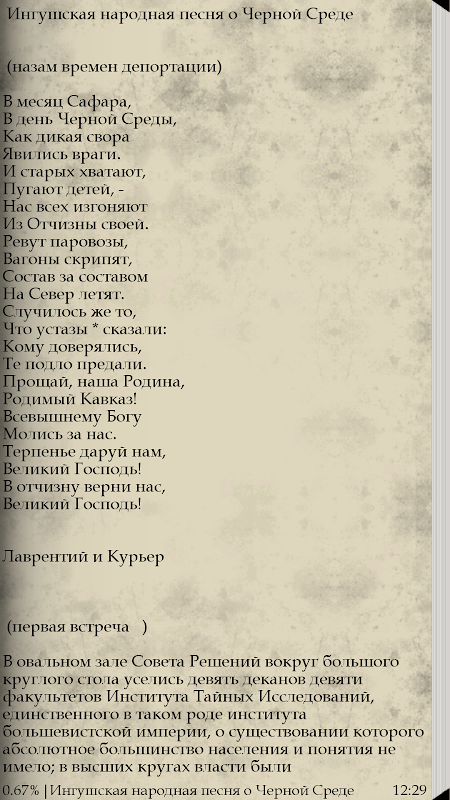 Novel ini menceritakan nasib tragis rakyat Ingushetia. Issa Kodzoev.