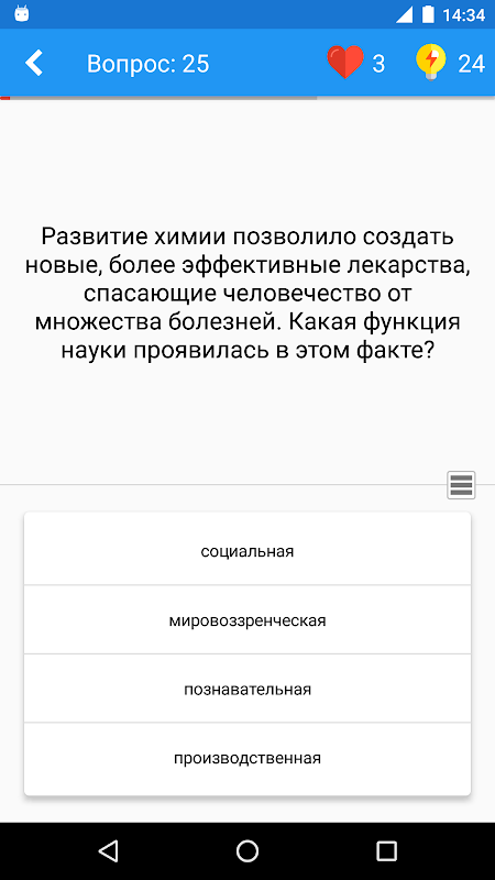 Gim ini memiliki dua mode: maraton dan sprint. Dalam mode maraton, tugas Anda adalah menjawab semua pertanyaan dari kategori. Sprint: Anda harus menjawab jumlah pertanyaan maksimum dalam satu menit.