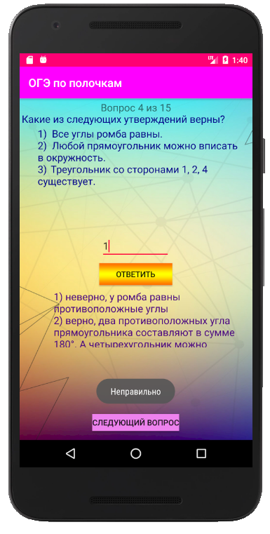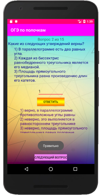 Это мобильное приложение поможет тебе успешно решить 19 задание и сдать ОГЭ! В нем собраны ВСЕ 19 задания с открытого банка ОГЭ ФИПИ с ответами и решениями, а также показано на нескольких примерах, как нужно решать это задание. В приложении также содержатся советы и тесты, тренироваться на которых ты можешь ежедневно и будешь получать результат своих знаний. Чем больше раз ты пройдешь тесты, тем лучше будешь решать на экзамене и другие номера, потому что в тестах есть пояснения, которые легко запоминаются! "Математика - царица наук", так приложи усилия и стань царём математики! Успехов в подготовке и сдачи ОГЭ!