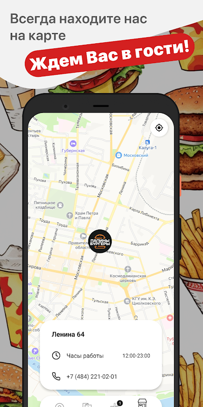 Kami ahli burger di Kaluga. Kami menggoreng burger gourmet yang kuat dan berair sesuai dengan resep asli! Kami menggulung irisan daging dari daging sapi marmer, dan membuat roti sendiri setiap hari. Dan untuk membuat Anda benar-benar bahagia, kami menyimpan lebih dari 200 jenis kerajinan di lemari es kami. Ingat hal utama: Ayah akan memberi makan semua orang!