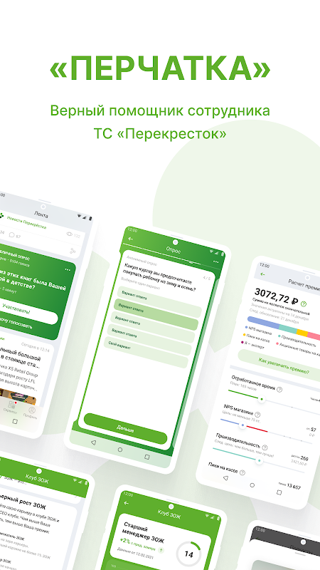 Sarung tangan ini bukan hanya aplikasi untuk karyawan Perekrestok Trade House JSC, tetapi platform seluler lengkap yang menggabungkan semua alat yang diperlukan dan memungkinkan untuk bergabung dengan perusahaan dan berkomunikasi tanpa batas.