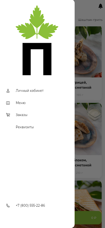 Aplikasi jaringan Petrushka untuk memesan untuk pengiriman atau pengambilan.