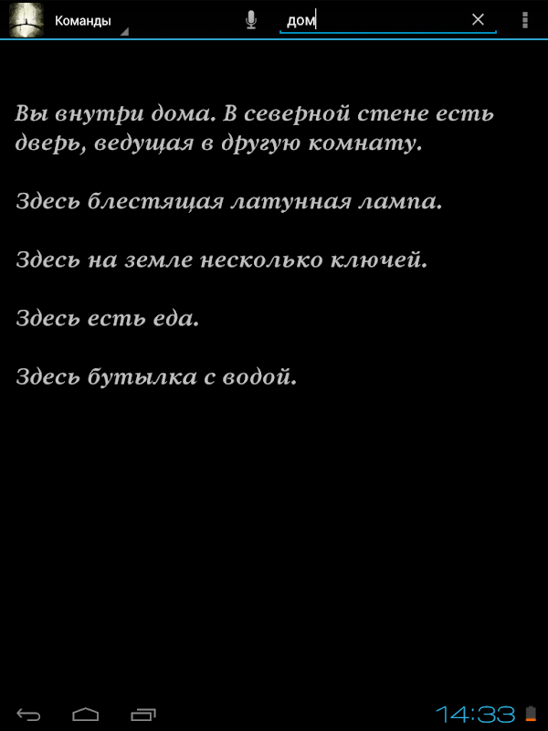 ВАЖНО: специально для тех, кто никогда не играл в текстовые квесты! В самом начале игры, после фразы "Приглашаем в путешествие! Вам нужны инструкции?", нажмите на значок лупы (в правом верхнем углу) и введите "да" или "нет" без кавычек.