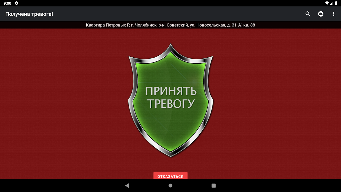 Приложение отслеживает состояние охраняемых объектов и, при получении и подтверждении тревоги, отображает основную информацию об объекте: