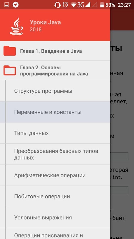 Java 2018. Kursus Lengkap Dalam aplikasi ini, Anda akan menemukan sekitar 100 artikel di Jawa.