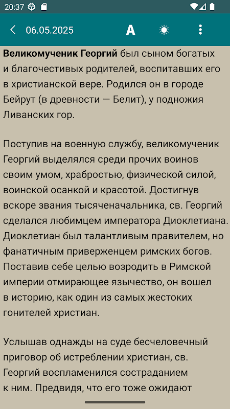 - Tampilan informasi tentang liburan dan memori orang-orang kudus untuk setiap hari;