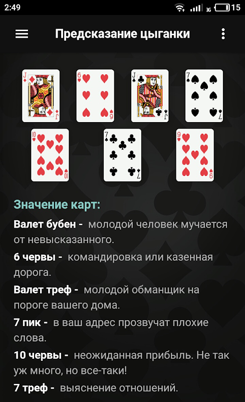 Dengan bantuan deck bermain, peramal nasib gipsi yang paling jujur dilakukan. Secara alami, Anda dapat memprediksi masa depan dengan cara yang berbeda.