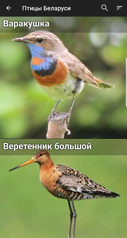 Aplikasi offline. Foto, suara, dan deskripsi semua jenis burung Belarusia.