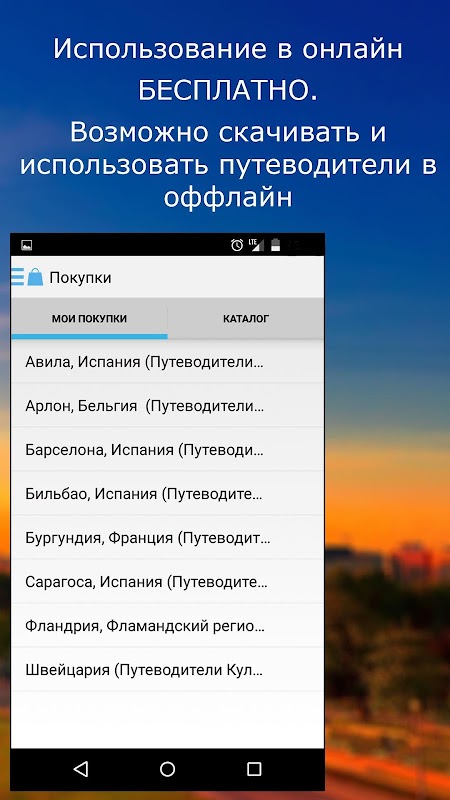 Путеводителями можно пользоваться бесплатно в онлайн-режиме или платно в оффлайне (путешествие). Можно скачать путеводитель и карту по любой стране или региону Европы.