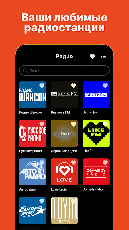 3. Pencarian mudah berdasarkan stasiun – temukan gelombang yang Anda butuhkan dengan cepat (Record, Disney, Russkoe, Marusya, Europa Plus, Svoboda, dll.).