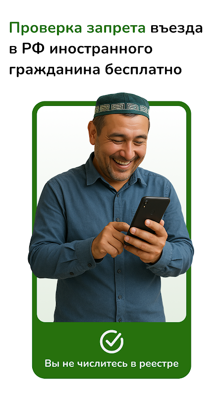 Ini adalah layanan referensi dan informasi yang memungkinkan warga negara asing untuk mengetahui apakah data mereka ada dalam daftar orang yang dikendalikan, yang digunakan di Rusia untuk menilai risiko migrasi. Aplikasi ini menelusuri data terbuka, termasuk yang diunggah di situs web resmi Direktorat Utama Kementerian Dalam Negeri Federasi Rusia.