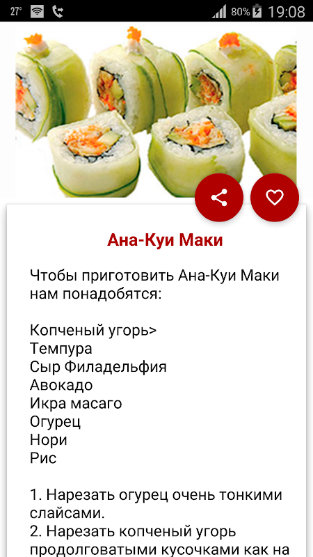 Dalam aplikasi ini, dikumpulkan resep roti di rumah. Ya bagus rasa makanan laut di restoran Jepang, tapi gulungan buatan sendiri diperoleh bahkan lebih lezat jika dipersiapkan dengan baik.