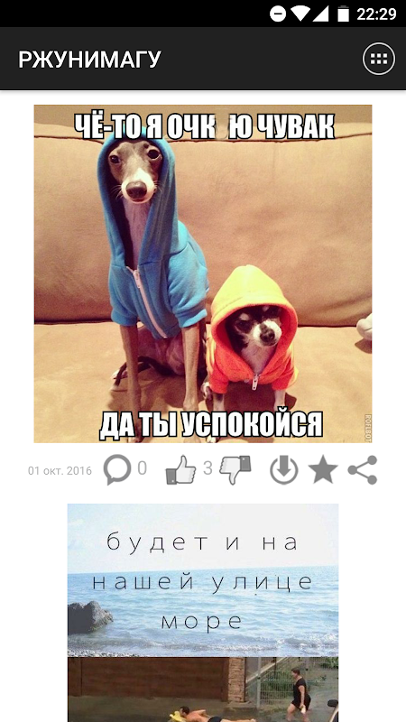 Понравившиеся записи можно комментировать и оценивать. Все понравившиеся картинки можно сохранять в галерее устройства в папке приложения. Ты можешь делиться записями с друзьями через социальные сети, а так же другие установленные на устройстве приложения. Ну и конечно, ты можешь оставлять лайки и сохранять записи в избранное.
