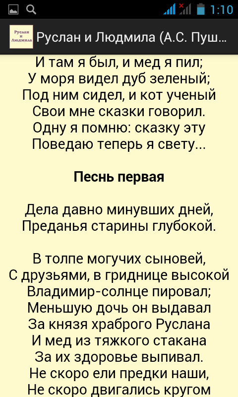 Buku untuk smartphone "Ruslan dan Lyudmila" akan memungkinkan pemegangnya untuk menikmati Pushkin suku kata dalam format yang nyaman!