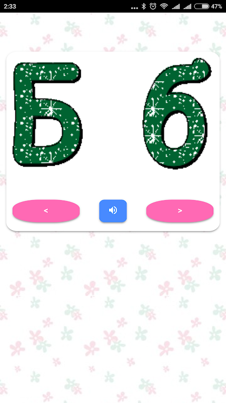 alfabet Rusia untuk anak-anak untuk belajar bagaimana membuat anak-anak untuk belajar abjad Rusia. huruf alfabet Rusia aplikasi dan bersedia untuk belajar suara-suara alfabet untuk huruf dari malyshey.Izuchayte alfabet Rusia secara tertulis dan tegas belajar. Colorful dan berkilauan huruf desain membuat aplikasi menarik dan menghibur. Anda dapat mempelajari vokal dan konsonan dari bahasa Rusia. Fitur terbaik dari aplikasi ini - untuk mengajarkan Anda pengucapan yang benar dari huruf Rusia. Mempelajari aplikasi abjad Rusia mengajarkan benar untuk mengatakan vokal dan konsonan dari alfabet. tombol Berikutnya dan Sebelumnya membuatnya mudah dinavigasi. Aplikasi pendidikan ini memberi Anda kesempatan untuk mempelajari 33 huruf dari cara mengejutkan dan menarik alfabet. Aplikasi ini tidak abjad Rusia dengan gambar dan presentasi. Pengucapan setiap huruf dengan suara membantu untuk menghafal alfabet lebih cepat dan lebih cepat. Dengarkan suara setiap huruf dan melihat gambar. Aplikasi pendidikan sederhana ini juga mengajarkan anak-anak huruf alfabet untuk mengenali kata-kata seperti yang muncul.
