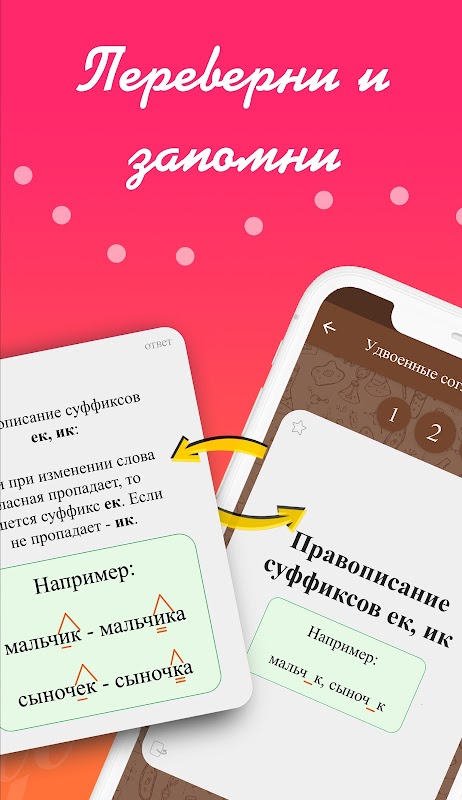 Seluruh kursus sekolah bahasa Rusia disajikan dalam bentuk kartu flash, yang merupakan metode terbaik untuk menghafal sejumlah besar informasi.