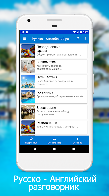 Aplikasi ini berisi lebih dari 1.500 frasa yang paling sering digunakan dan kamus bahasa Inggris untuk pelancong dan pemula.