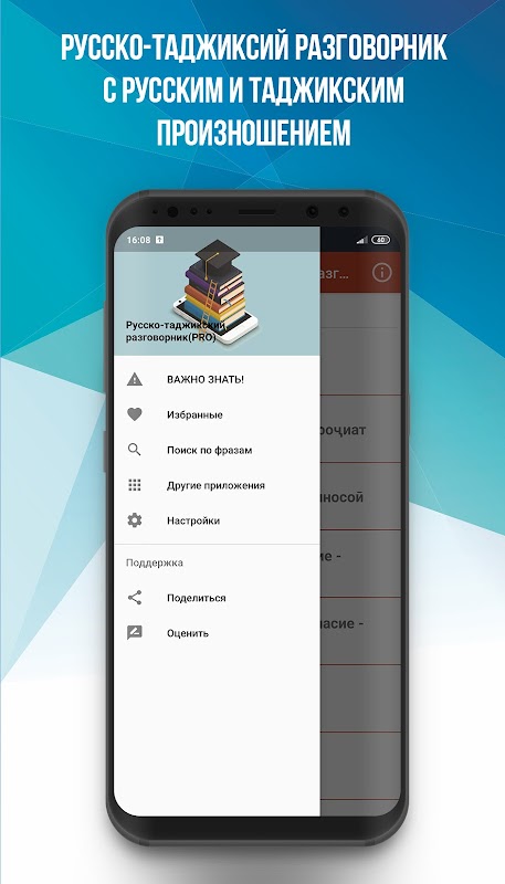 🏆 Buku Frasa adalah asisten yang sangat baik bagi mereka yang tahu bahasa Rusia / Tajik, dan pendamping yang sangat diperlukan bagi semua orang yang baru mulai belajar bahasa. Buku frasa berfungsi sepenuhnya tanpa koneksi internet.