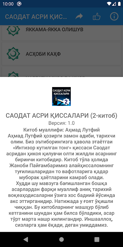 APKPure menggunakan verifikasi tanda tangan untuk memastikan unduhan APK Саодат асри қиссалари 2-китоб yang bebas dari virus untuk Anda.