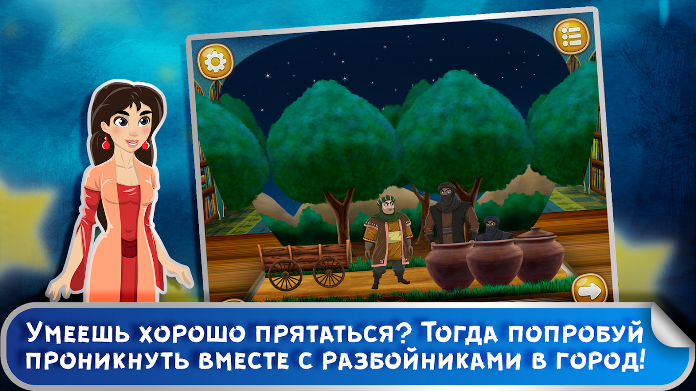 Timur dongeng dari buku "Seribu Satu Malam" memberitahu Anda bagaimana suatu hari pemuda Ali Baba menemukan rahasia para perampok, yang selama bertahun-tahun menjarah kafilah. Mengatakan kalimat ajaib "Sim-Sim, membuka!", Ali Baba memasuki perbendaharaan perampok. Dengan membawa sedikit emas, ia kembali ke rumah, menceritakan segala sesuatu untuk saudaranya Qasim, orang malas dan serakah. Tidak setuju untuk berbagi Ali Baba membawa emas, Kasim dia pergi ke kas. Hanya sekarang tidak bisa keluar dari sana: kata-kata ajaib ... lupa bagaimana berurusan dengan mereka perampok, mereka akan ingin membalas dendam pada Ali Baba? Tentang semua ini Anda dapat mengetahui dengan mendownload interaktif dongeng "Ali Baba dan 40 Pencuri."