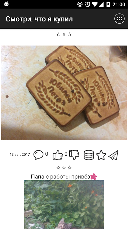 Понравившиеся записи можно комментировать и оценивать. Все понравившиеся картинки можно сохранять в галерее устройства в папке приложения. Ты можешь делиться записями с друзьями через социальные сети Facebook, Вконтакте, Одноклассники, Viber, WhatsApp а так же другие установленные на устройстве приложения. Ну и конечно, ты можешь оставлять лайки и сохранять записи в избранное.