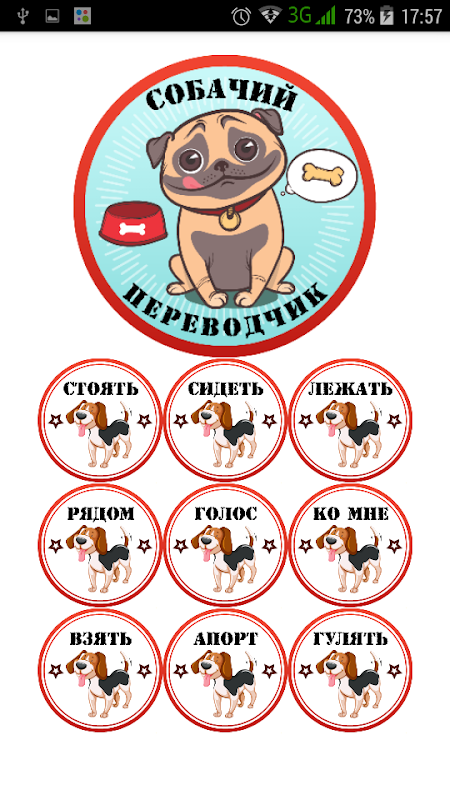 Помимо этого, в приложении Собачий Переводчик собраны основные команды для собак, такие как: