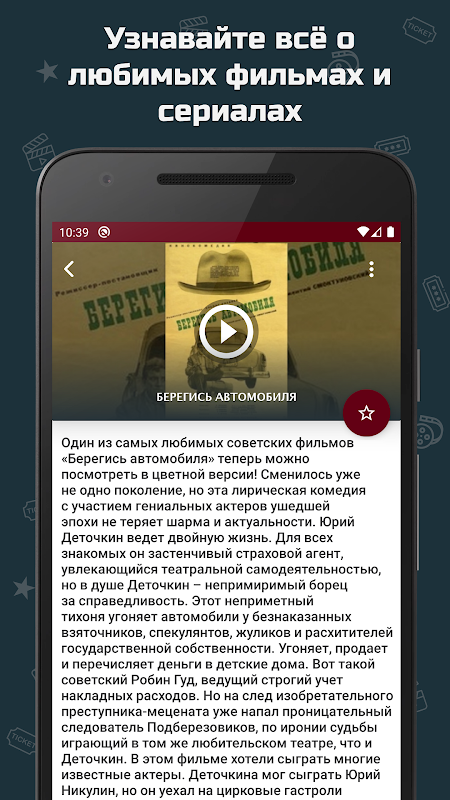 Aplikasi ini memungkinkan Anda untuk menonton film Soviet dalam genre spiritual "melodrama".