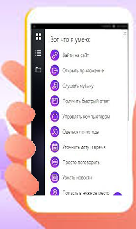 Control your phone with Alisa Alice for android, voice commands Alisa. Alisa for Android is not demonstrating all its features when controlling your device. The main features of alice android is to have intelligent voice command service in Alice app for android. From now on you do not need to touch your phone every time you need to make an action on it. Just ask Alice voice app and it will immediately response to your voice. In Alice Yandex application for having Yandex Alice voice assistant you need to download Yandex or Yandex browser