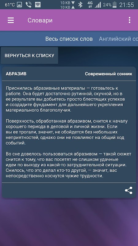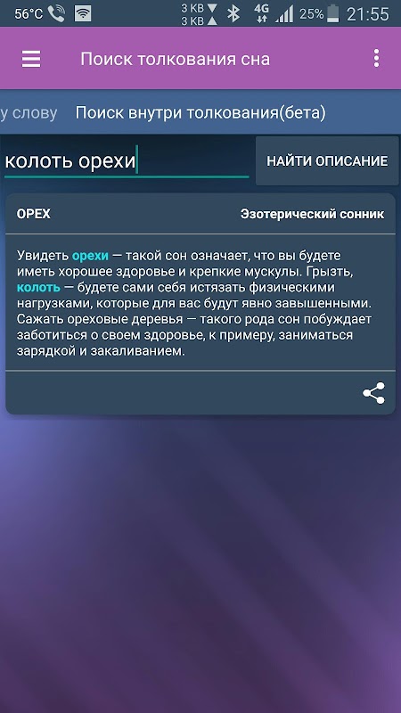 Добавлена возможность поиска значения сна внутри толкования. Может помочь искать фразами, при невозможности сформулировать сон одним словом.