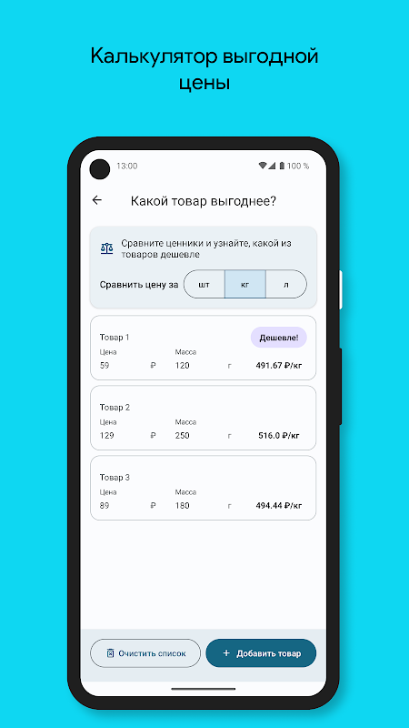 Daftar belanja sederhana dan nyaman dengan widget + kalkulator perbandingan harga