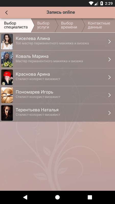 Мобильное приложение для клиентов студии красоты и перманентного макияжа "Evvi"
