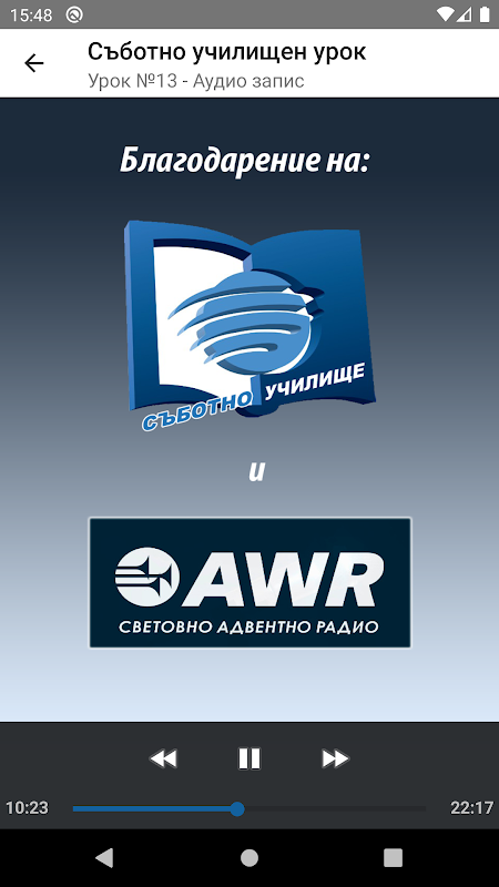 "Saturday School Lesson" adalah aplikasi yang memungkinkan Anda membaca pelajaran melalui ponsel Anda. Ini menawarkan kemampuan untuk memilih dan menampilkan semua pelajaran dari tahun 2006 hingga saat ini. Program ini menggunakan jumlah minimal paket data untuk mengunduh pelajaran yang dipilih. Setelah mengikuti pelajaran, Anda akan dapat melihatnya, bahkan tanpa koneksi internet.