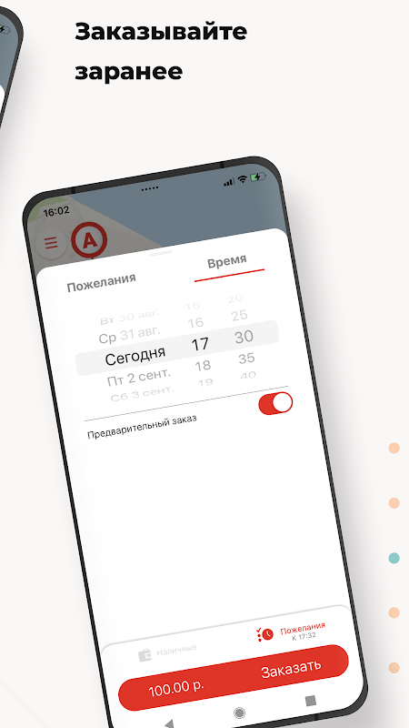 Butuh mobil dengan waktu dan tanggal tertentu? Pesan terlebih dahulu melalui aplikasi, dan pada waktu yang ditentukan, taksi akan menunggu Anda di pintu masuk.