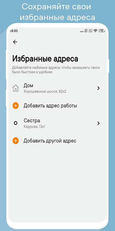 • история заказов и сохраненные адреса позволяют создавать заказы быстро и просто, в пару кликов;