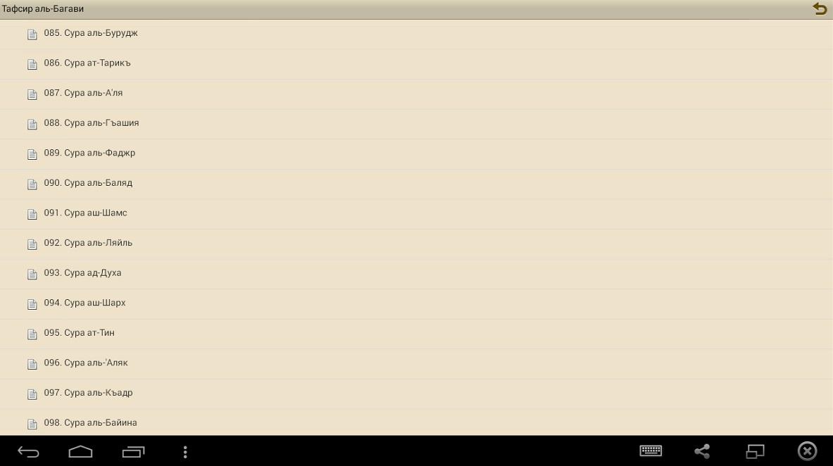 Seperti dalam aplikasi Tafsir ibn Qasir sebelumnya, pengisian dengan volume baru Tafsir al-Bhagavi akan terjadi dengan pembaruan otomatis.