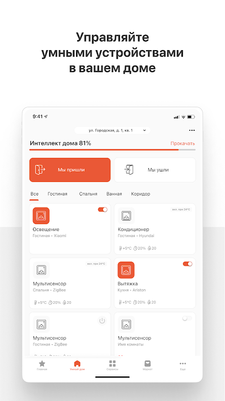 • Mengontrol akses ke area properti. Aplikasi ini terhubung dengan kamera kompleks perumahan, pembatas di area parkir bawah tanah, dan berfungsi sebagai kunci interkom. Terdapat fungsi akses tamu dan kemampuan untuk menerima panggilan dari interkom.