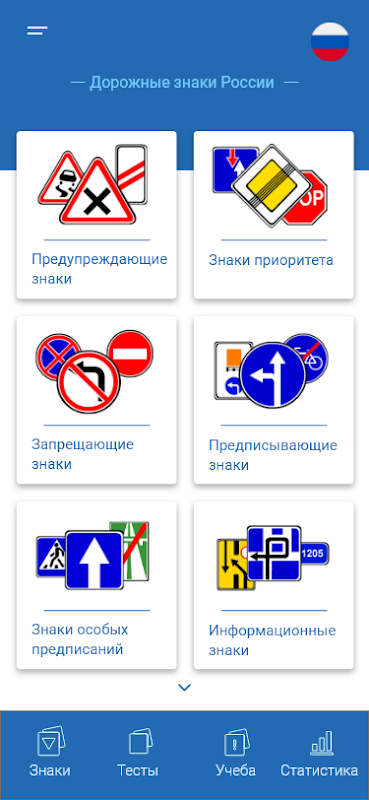 Bagian pelatihan berupa peraturan lalu lintas dengan ilustrasi pada kartu pendidikan: setiap kartu berisi gambar situasi lalu lintas dan pertanyaan tentangnya. Anda menemukan solusi Anda sendiri untuk situasi tertentu, dan kemudian membalik kartunya untuk melihat apakah solusi Anda benar.