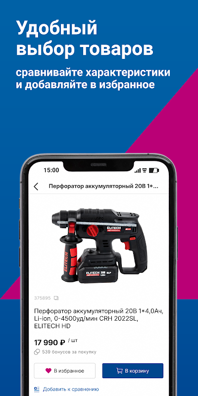 Dalam aplikasi kami, Anda dapat membeli segalanya untuk konstruksi, perbaikan, dekorasi, dan rekreasi.