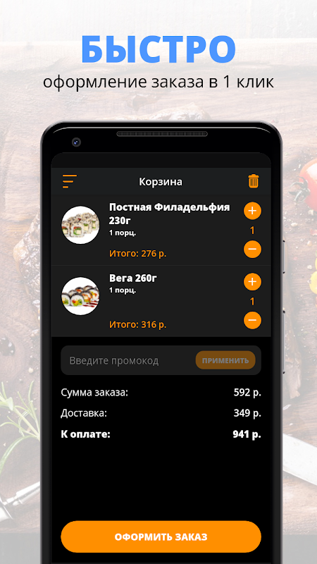 Pada menu Khas Delivery Anda dapat menemukan hidangan terpopuler masakan Italia dan Jepang, dan bagi yang menginginkan individualitas, kami memberikan kesempatan untuk memilih sendiri komponen masakannya. Pastikan setiap pesanan Anda akan diselesaikan tepat waktu dan dengan perhatian khusus.