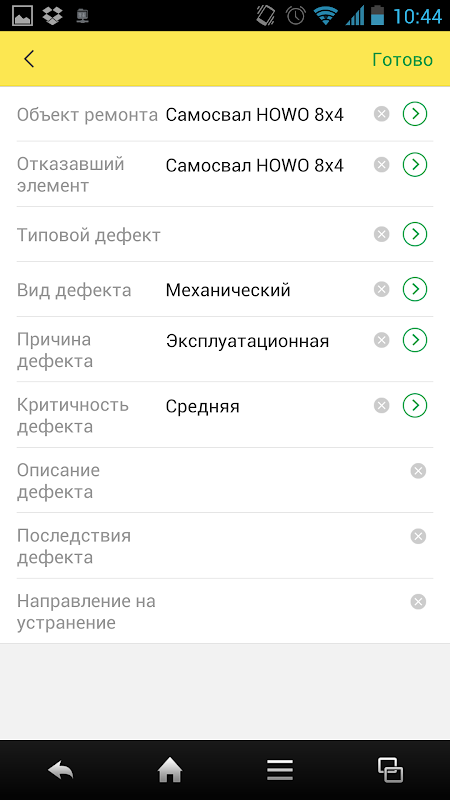 Aplikasi mobile untuk 1C: MRO. Bergabung cacat indikator negara.