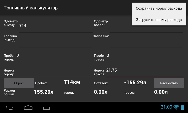 2.0.4 - Добавлен ввод отрицательных значений остатка топлива при выезде