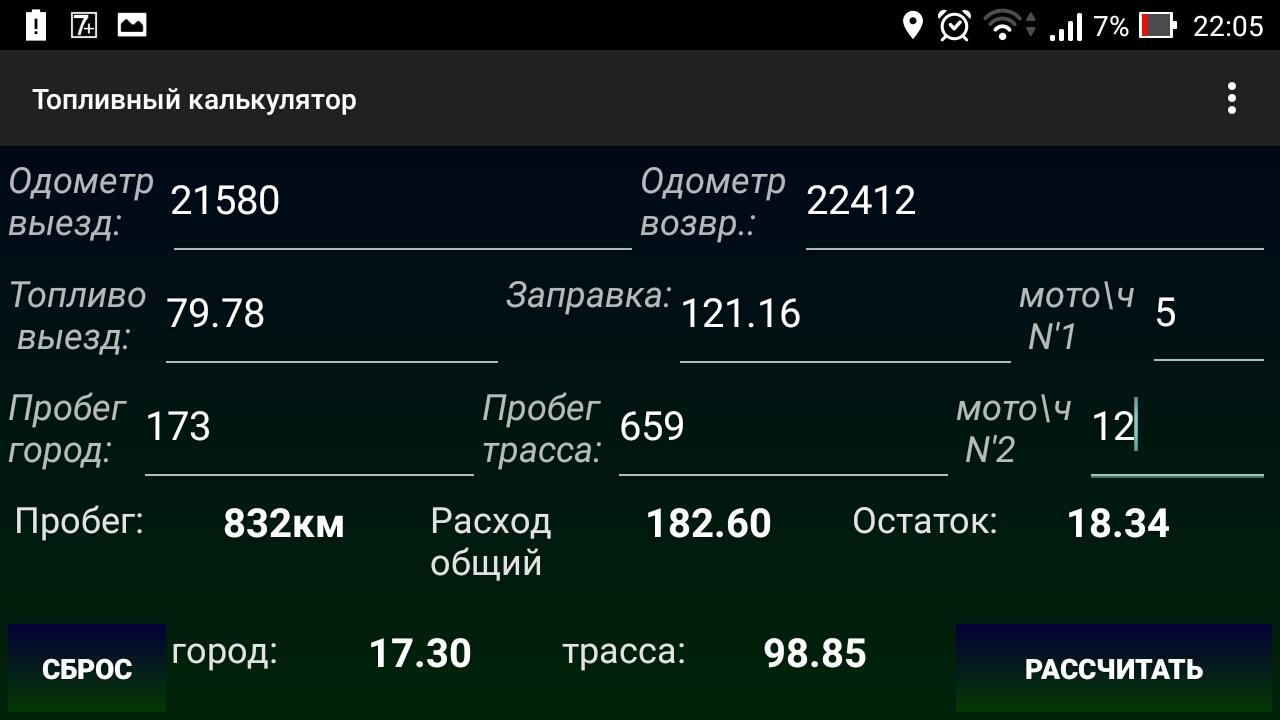 Kalkulator untuk menghitung konsumsi bahan bakar dan jarak tempuh ketika mengisi waybill.