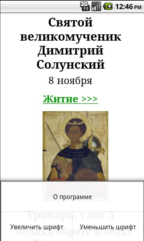 Aplikasi ini berisi troparia, kontakia dan pemuliaan "umum": martir, martir, martir abad XX Rusia, biarawan, biarawati dan lain-lain.