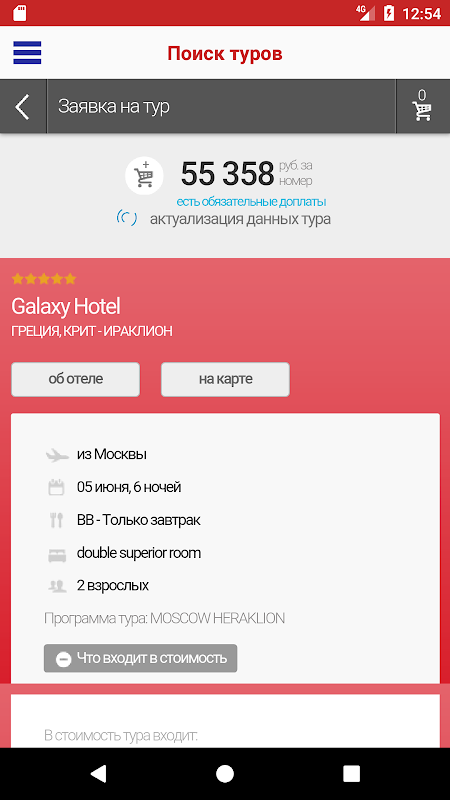 - lihat foto hotel, cari tahu lokasinya, jenis kamar, dan makanan untuk tur yang dipilih;