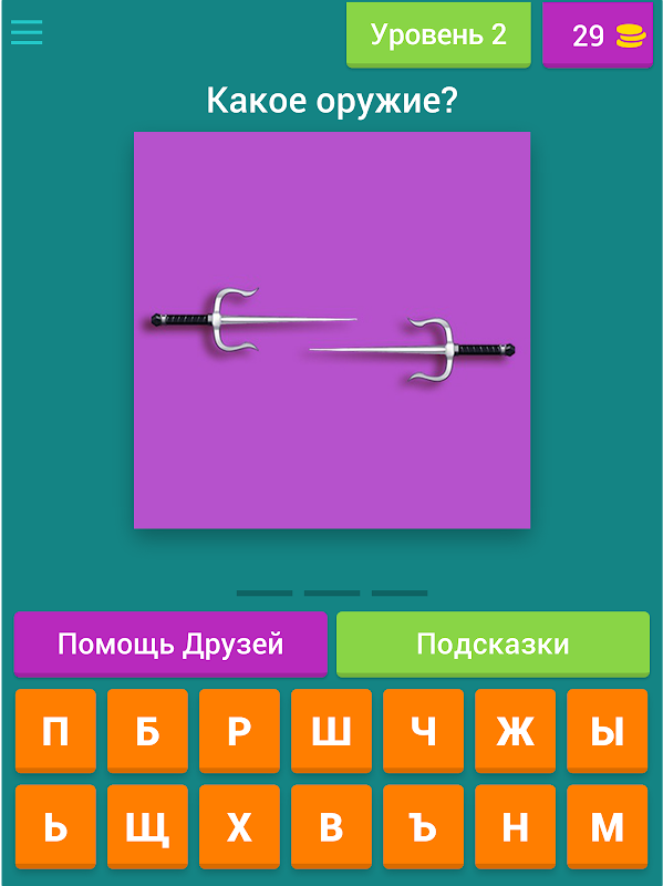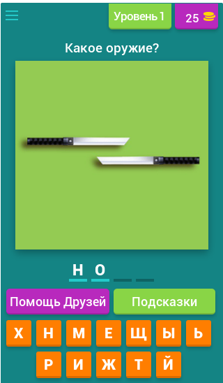 В игре вам предстоит угадывать различное оружие по их названию, как из игры ShadowFight. Название нужно вписывать из предложенных букв специальное поле, и так проходить уровень за уровнем.