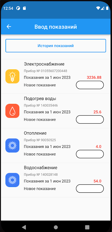 Tampilan nyaman dari sejarah akrual dan pembayaran. Memasuki pembacaan meter.