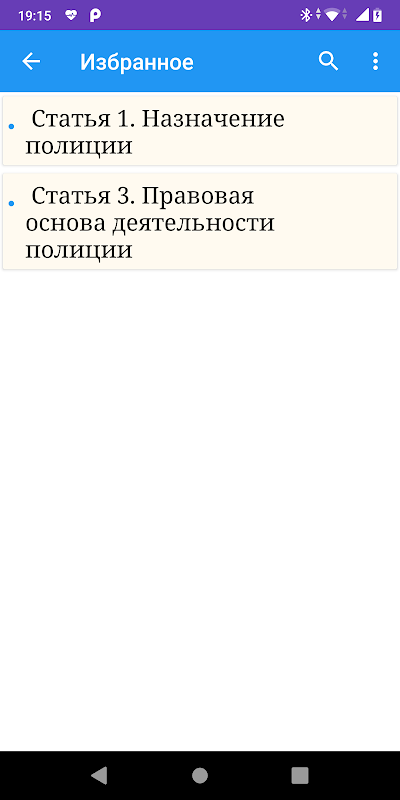 - Добавляйте нужные статьи в список избранное, для быстрого доступа к ним из меню;