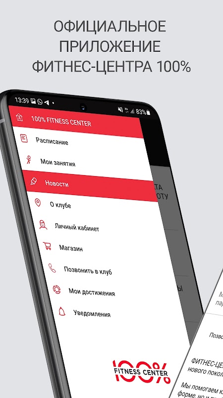 Aplikasi untuk klien klub "Pusat Kebugaran 100%"