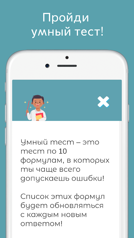 Kami juga memiliki fungsi unik - "Tes Cerdas" - ini adalah tes untuk 10 rumus yang paling sering Anda buat salah! Daftar ini akan diperbarui seiring Anda menjawab.