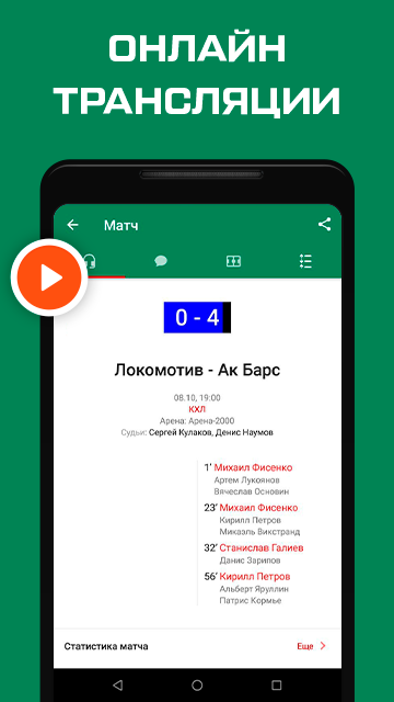 • Siaran teks pertandingan, kalender dan tabel KHL;